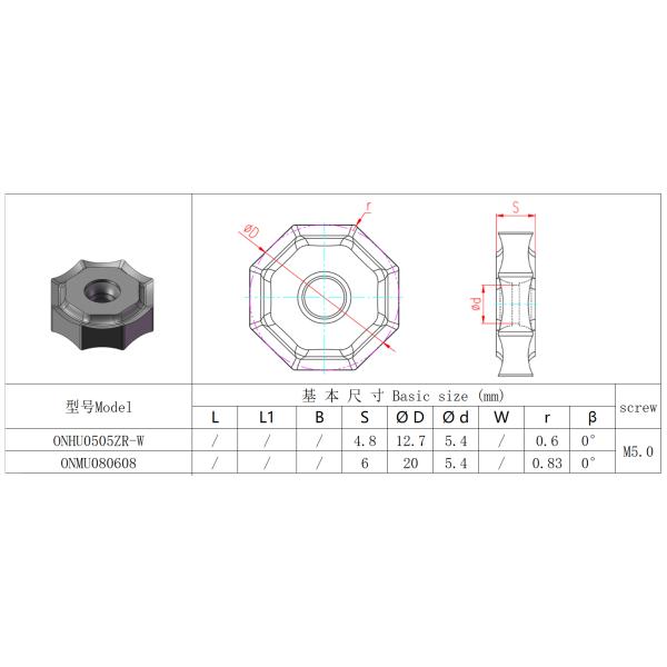 CNC Milling Insert with PVD Coating ONMU080608 HYB208, Suitable For Difficult-to-machine Materials Except High-temperature Alloys. Images |